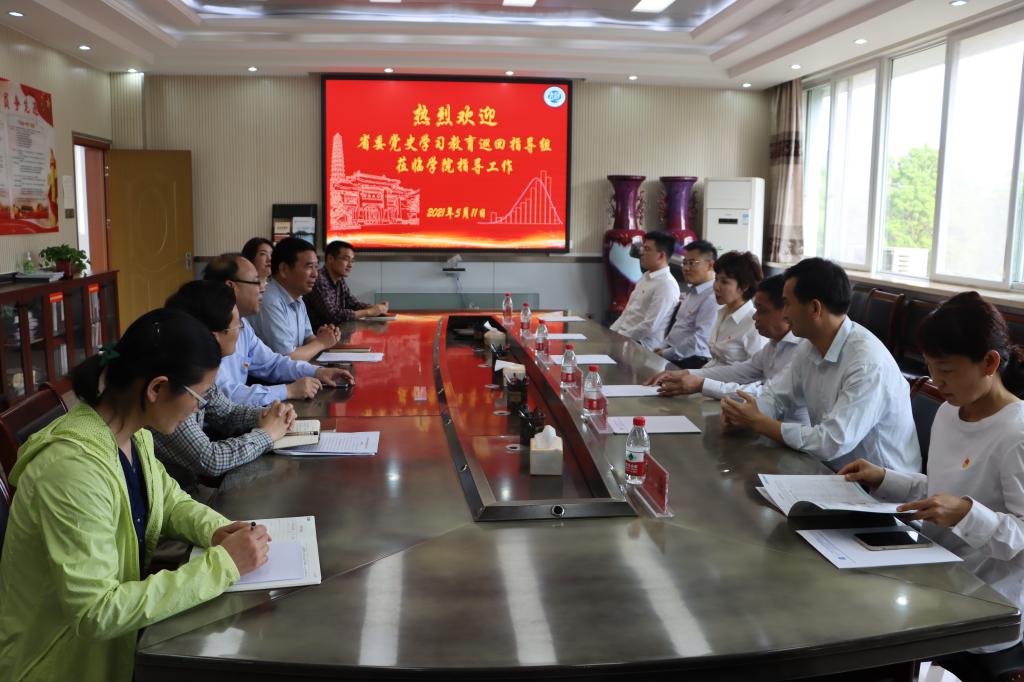 ,对学院党史学习教育工作进行指导,座谈交流会在学院二楼党建活动室进行。学校党委副书记张宝明、校党委宣传部部长王明钦等同志和学院党史学习教育领导小组成员参加了交流会,院党委书记史富强主持会议。