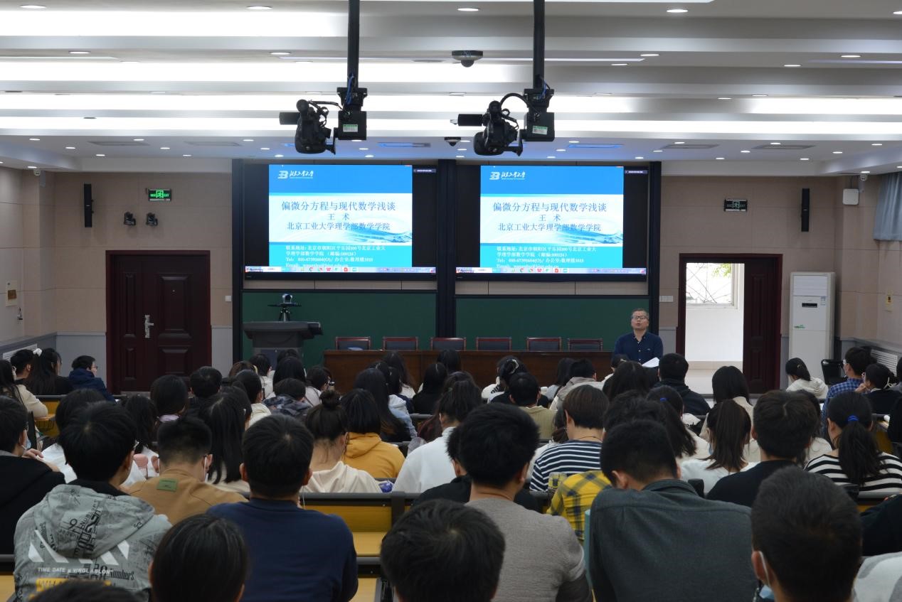 师生作题为“偏微分方程与现代数学浅谈”的科普报告。学院100余名师生参加了此次报告会。报告会由院长韩小森主持。