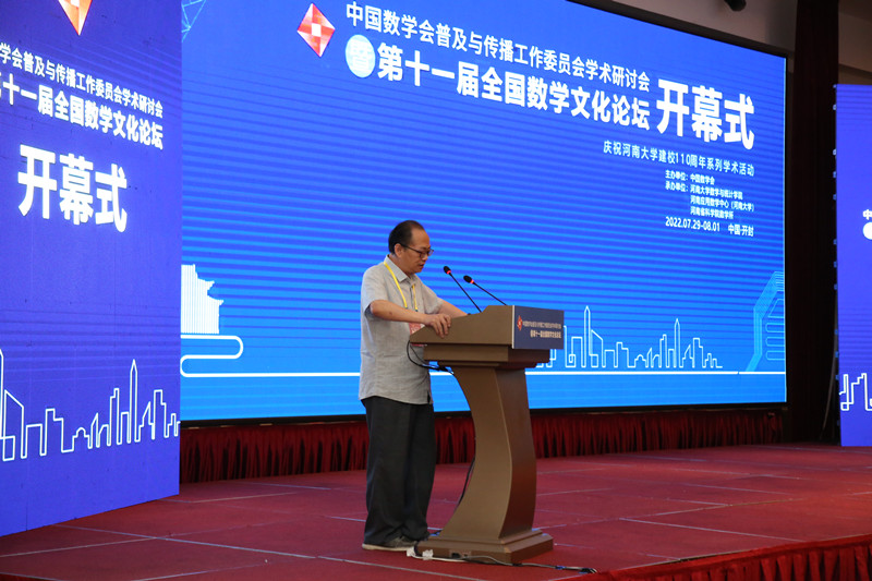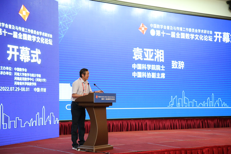 袁亚湘院士代表中国科协向主办单位和承办单位表示感谢。他肯定了中国数学会在科学文化传播中起到的表率作用,同时对数学文化论坛的发起者和长期为论坛作出贡献的数学专家们表示感谢。他表示,此次论坛在历史底蕴深厚的八朝古都开封举办具有特殊意义,希望通过论坛聚集新老朋友,凝聚共识,大家集思广益,共同深入探讨和思考将来如何更好推动数学文化的普及和发展。