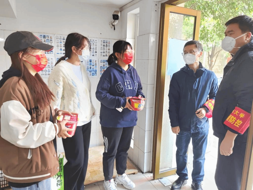 第二天上午,学院老师专门到宿舍楼下为获奖学生送上香菇酱、方便面、水果等奖品,并举行了简短的颁奖仪式,为封控管理的学生们带去了学院的关心和温暖。