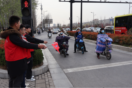 志愿者们身着红色马甲,手持小红旗、小铲子、环保袋,分成两组。男生组协助指挥学校北门十字路口非机动车辆的交通,对随意横穿道路、闯红灯、逆向行驶、骑乘电动车不佩戴安全头盔等违法行为进行劝导,呼吁大家遵守交通规则,安全出行、文明出行。女生组分工有序,对蜜桃视频