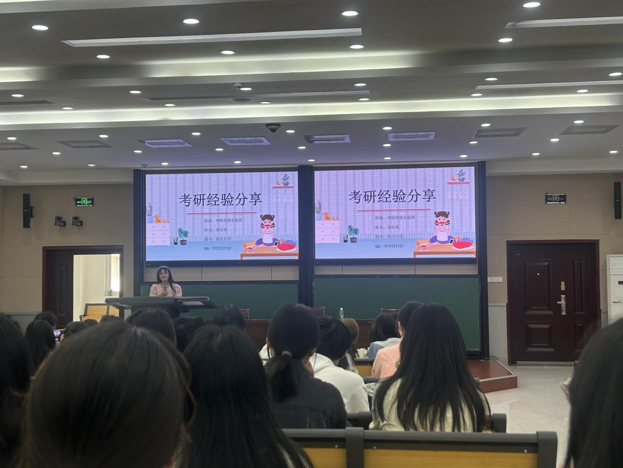 为了传递最新考研心得体会,帮助我院2020级学生树立考研信心,做好复习计划,我院于5月11日下午在南阶教室举行了考研同学经验分享交流会。分享会邀请了学院副院长王波教授,2019级10名优秀考研同学代表,学院130余名同学参加了分享会,2020级辅导员安其丰主持。