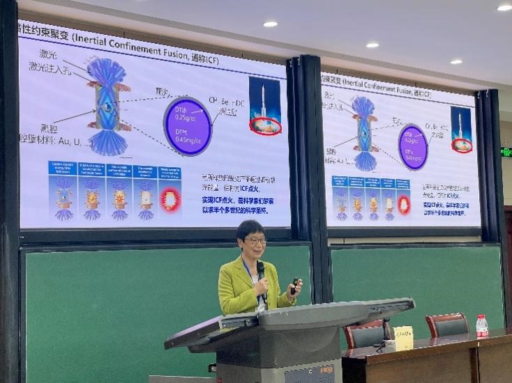 11月1日下午,蓝可研究员首先向广大师生作科普报告《美国捧得点火圣杯——走向可重复、可预测、高增益可控聚变新时代》。她从惯性约束聚变的起源讲起,直至最近美国NIF点火成功;她分析了美国NIF点火的经验教训,并指出了未来取得高增益点火目标可采取的新技术路线。