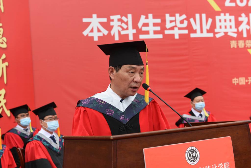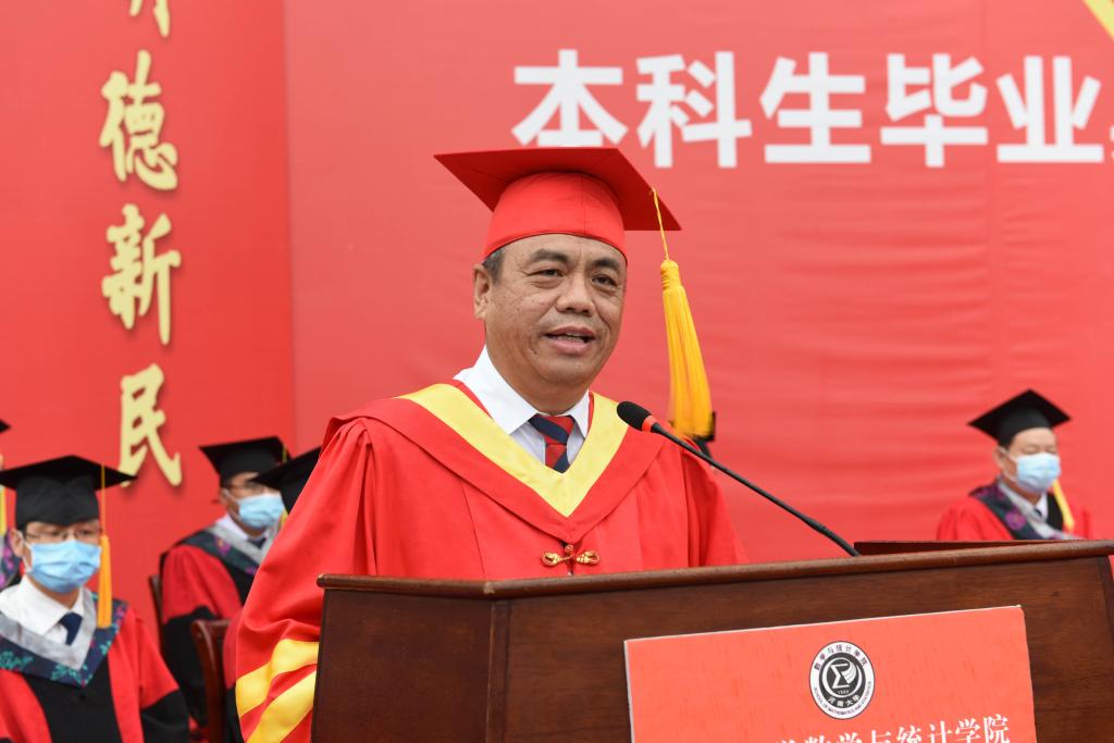 这是一个特殊的毕业季,同学们经过疫情这场漫长的“毕业加试”,在灾难淬炼中成长进步,进一步涵养了家国情怀,坚定了“四个自信”,强化了担当精神。“希望同学们将数学融入人生,善用数学思维深化人生认知,匡正前进方向,分析利弊短长,优化方法路径,走好自己的人生路!”卢克平用数学的语言深情寄语毕业生:以直代曲、大道直行,不负伟大时代、不负青春之我!他以数学概念演化人生之理,教育同学们要处理好有限与无限的关系,选择有限目标,追求无限境界;要正确看待直与曲,以直代曲,守正创新,正直做人,宽以待人;要处理好人生或然与必然的关系,以必然去努力奋斗,用或然看成败得失;要处理好人生的加法与减法,做好人生微积分,积小善为大善,积小成为大成;要处理好常与变的关系,守常求变,常学常新,真正成就大我;要处理好大于和小于的关系,做好人生不等式,成就精彩人生。这些充满数学智慧的人生哲理,给毕业生以极大的激励和启迪。