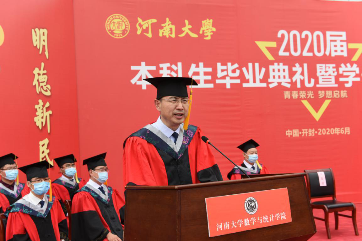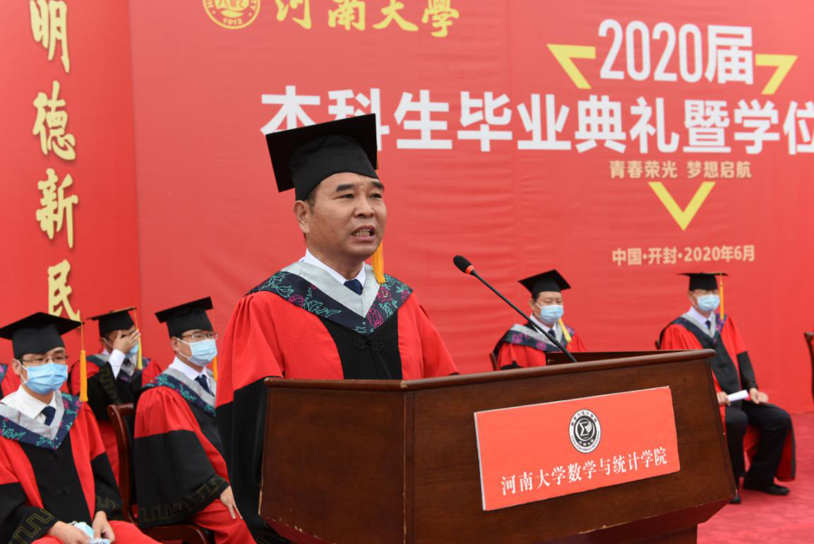 河南省文明教师、博士生导师陈守信教授,作为教师代表与毕业生分享了人生感悟,给予毕业生鼓励和关怀,希望毕业生维护母校荣誉,讲好河大故事;珍惜同学情谊,化为前行动力;追求但不强求,能吃亏不抱怨,从容豁达地工作生活,成就精彩人生。他叮嘱大家,当你们获得成功取得荣誉时,不要忘记和母校老师分享喜悦;当你遭遇挫折时,不要忘记母校有牵挂你支持你的老师!陈老师质朴的话语饱含深情,如春风化雨般滋润心田,令毕业生为之动容。