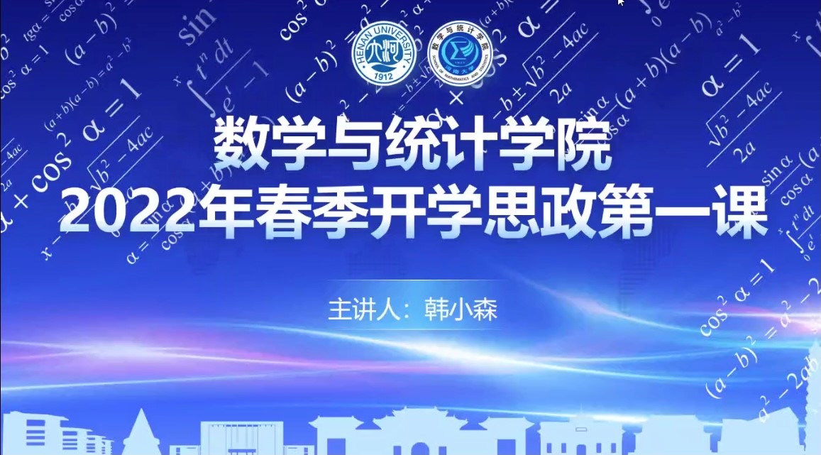 为加强我院学生的思想政治教育,落实好立德树人根本任务,使同学们以良好的精神风貌投入到新学期的学习生活,2月26日上午,学院党委书记史富强、院长韩小森在线上为同学们讲授2022年春季开学思政第一课。学院各年级同学在线参加了此次课程。