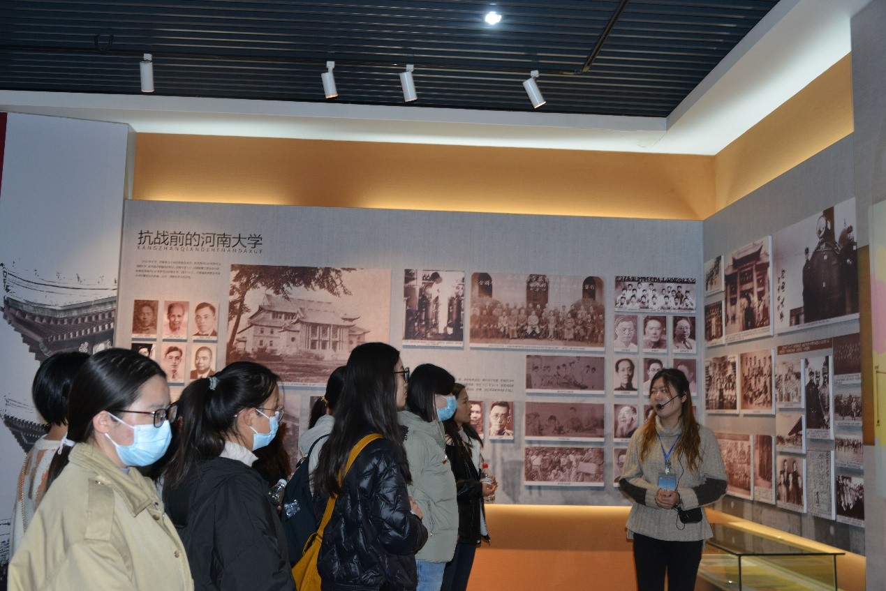 之后,史富强带领大家来到了校史馆参观学习。校史馆是我校历史发展、文脉传承、精神文化的重要物化凝练,具有深厚的历史积淀和河大特色。在校史馆中,听着讲解人员仔细梳理学校曲折前行的发展脉络,同学们切实的感受到了河大的不平凡,对“百折不挠、自强不息”的河大精神有了进一步理解和认识。馆中藏有丰富的史料,图文并茂地展示了学校各个方面的精神风貌和杰出成就,对学校人文、地理、教学、科研以及对外交流等方面都做出了详细的阐释,展示了河大各个时期的办学成果以及名人事迹,使同学们对学校百年发展历史有了更深层次的了解,对中国共产党人艰苦奋斗、不惧牺牲的伟大革命精神有了更深的感悟,激励了同学们作为新时代的河大学子,要继承和发扬老一辈河大人的光荣革命传统,赓续红色血脉,加强自身学习和锻炼,立志成为栋梁的决心和毅力。