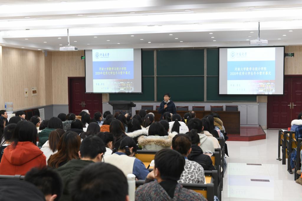 研招办主任白莹在致辞指出数学学科在学校学科发展布局中具有重要地位和作用,并对研究生招生录取,奖助学金情况做了介绍。希望同学们全身心投入冬令营活动,通过聆听本次冬令营各类学术讲座,对河大的学术研究氛围有更深的体验与感受。