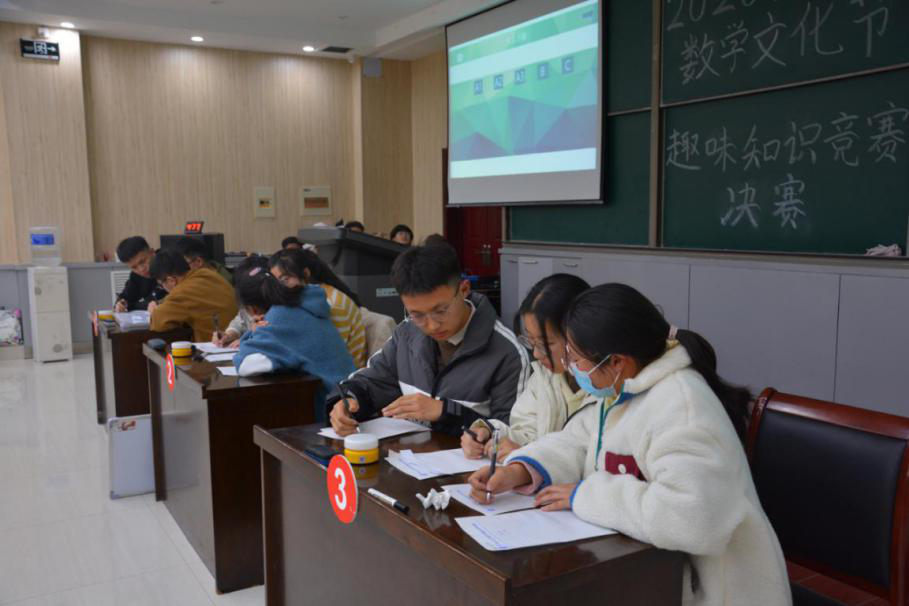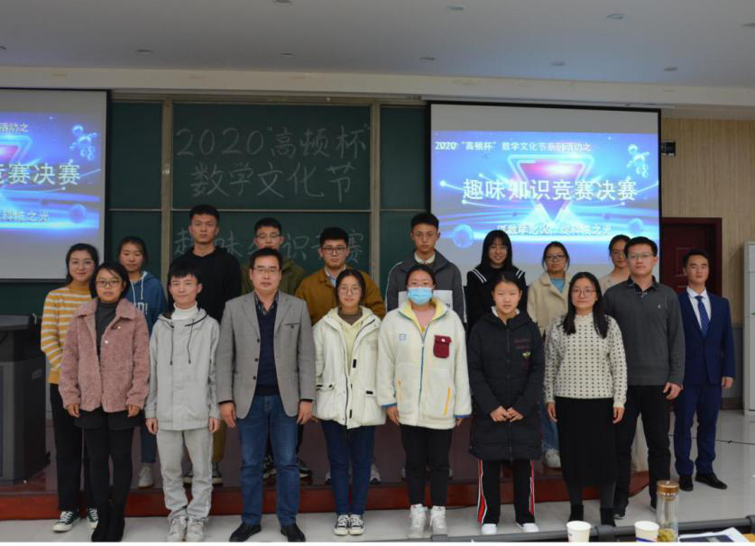 为拓宽同学们的知识面,提高数学学习的积极性和主动性,我院于11月26日晚在南阶教室举办了“高顿杯”数学文化节系列活动之趣味数学知识竞赛决赛。学院副院长解俊山、学院团委书记吴苏苏、青年教师王龙飞和李亚莉担任仲裁。