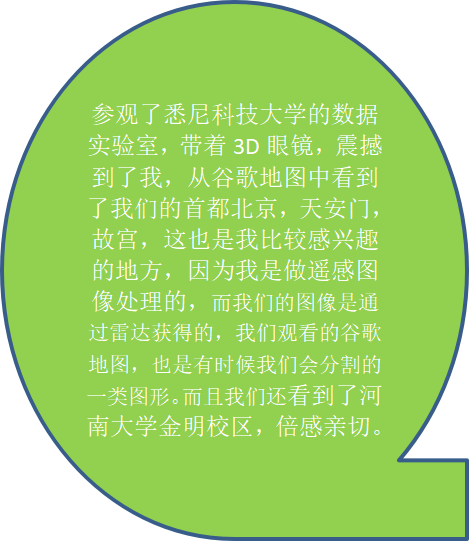 参观了悉尼科技大学的数据实验室,带着3D眼镜,震撼到了我,从谷歌地图中看到了我们的首都北京,天安