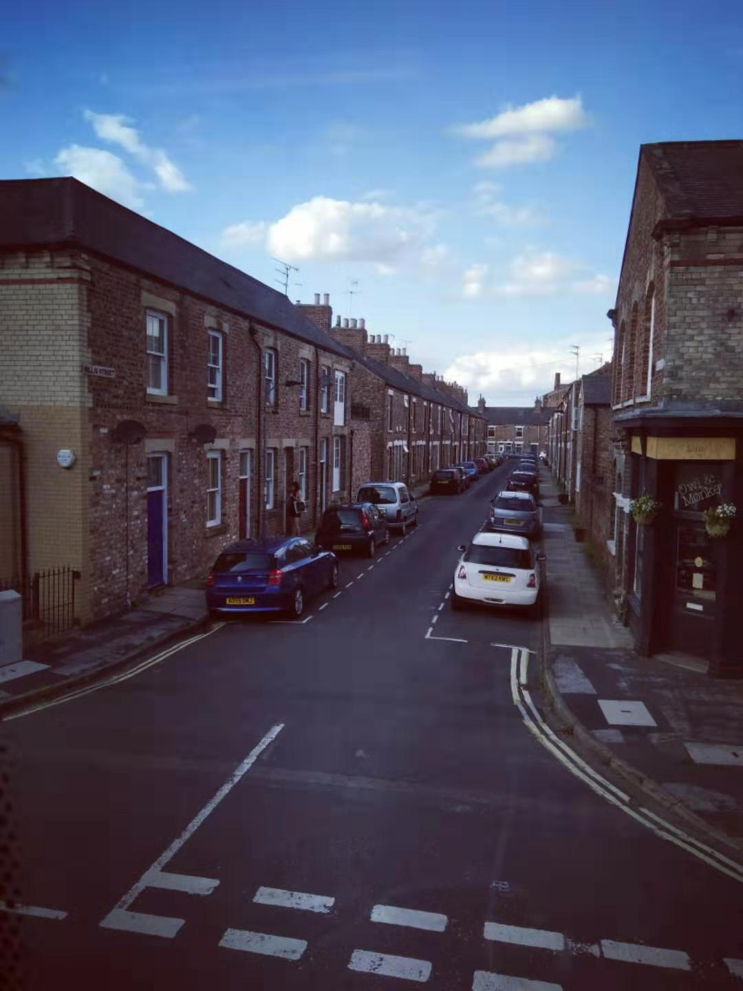 初到约克,我就被马路两旁的大片的草地和麦田所震撼了,草地上还有很多马群和羊群,它们安详地在低头吃草,仿佛没有看到我们一般。约克大学里面的一栋栋漂亮精致的民居也让我们赞叹不已,红色的砖墙上爬满了青绿色的藤蔓,白色的门前摆放着各种植物,整个街道安静又整洁。