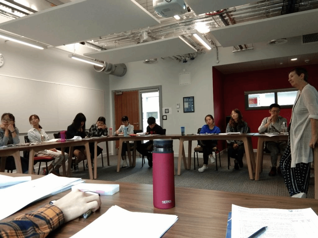 约克大学课堂的设置很有趣,班级围成一圈坐,大家的座位都面向老师,每一堂课都随机分成若干个小组来完成任务。课上老师每讲完一个阶段会向大家提问有没有什么问题,这对于我们来讲是难得的锻炼机会,在国内感觉课堂上的学生都不是特别活跃,更何况是在国外用英语。