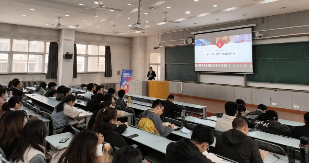 座谈会开始前,华安证券河南分公司风控总监臧华还为学院部分本科生和研究生开展了防诈骗专题知识讲座。她介绍了电信诈骗的常见套路,如何应对骗局以及被诈骗后应采取的措施,她还通过鲜活的案例提醒学生要警惕“校园贷”,要树立正确的消费观念,尽量避免使用网络借贷工具,重视个人信用,提高风险防范意识。