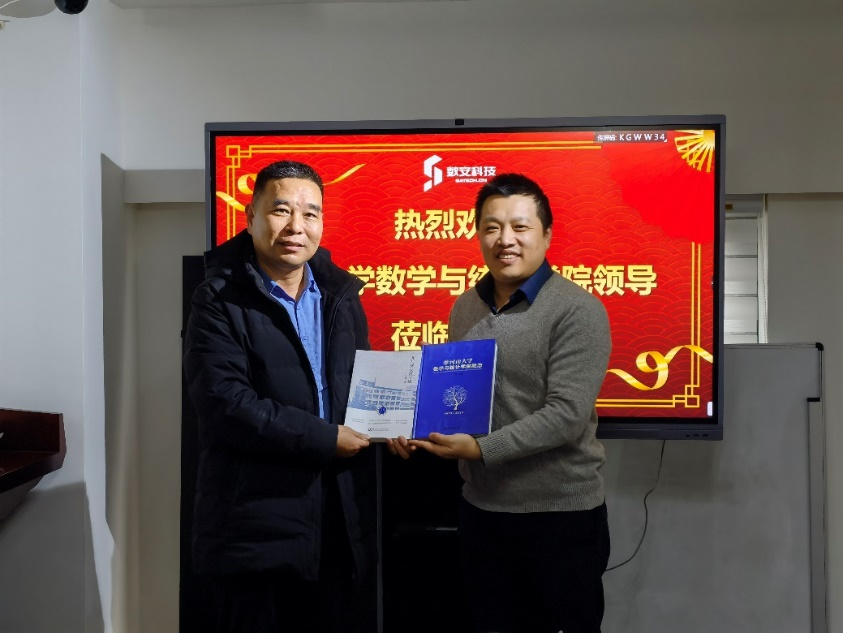 党委书记史富强、院长韩小森、副院长解俊山、省人工智能理论及算法研究中心主任杨晓慧、信息与计算科学系主任葛志昊、统计系主任郑晨、行政办公室主任安其丰一行赴河南数安科技有限公司、河南省档案馆参观调研,就深化院企合作、人才培养、产教融合等方面进行了洽谈交流。