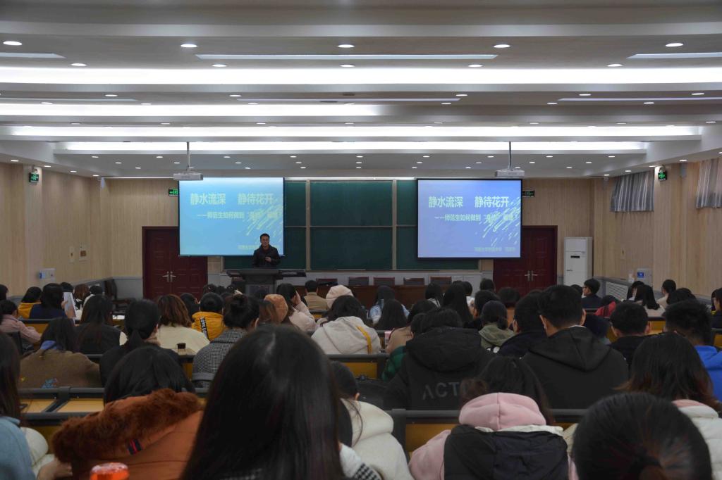 附属中学优秀教师范俊杰于11月21日下午,在学院南阶教室做题为“静水流深静待花开——师范生如何做到‘身价’倍增”的学术报告。报告会由学院副院长解俊山主持,相关方向师生参加报告会。