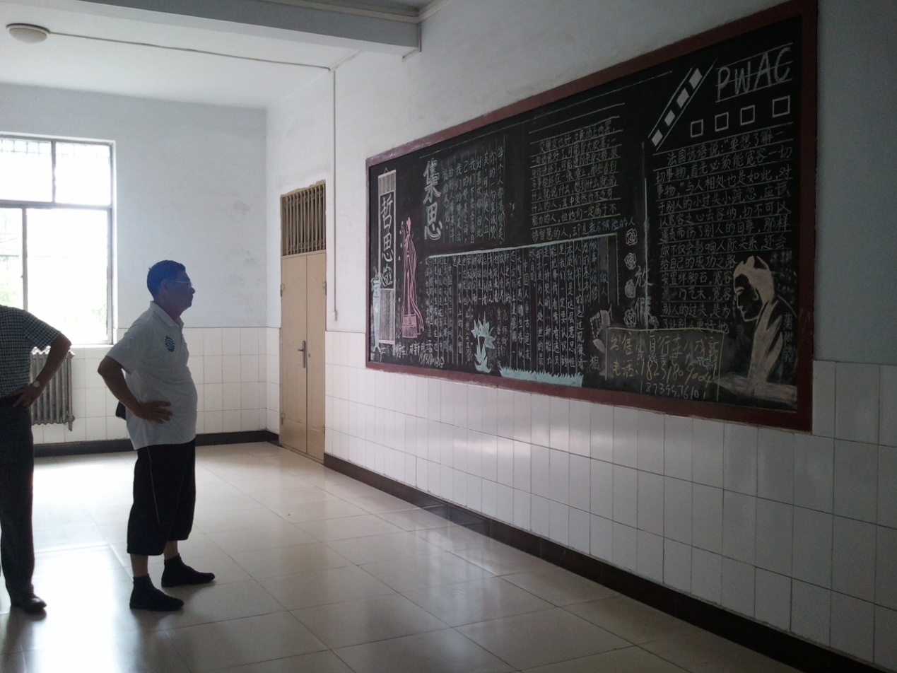 第二天,我们收拾好行李准备出发。学校的老师们都来送行,初中三个年级的学生本来在教室自习,可看到我们坐的车要开动,一下子涌了出来,一个个满含热泪,把车围了起来。我看车暂时不能离开,就下车跑回初二班教室,在黑板上写了四句: