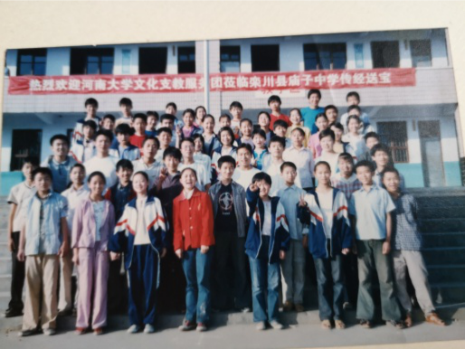 2003年3月,我们组织了洛阳栾川学校教育调查活动,院团总支书记陈河山老师带队,学生会主要学生干部参加,一行五人进行了为期四天的活动。当时的交通非常不便,从洛阳市坐大巴车到栾川县城走了八个小时,陈老师的手机也一直接收不到信号。深入乡村后,见到的现状和电视剧的情境相差无几,一群孩子对着照相机新奇的摆姿势,更多的孩子害怕地远远躲着,教学条件也很差,孩子们对大山外的世界怀着无限的期待和向往。从洛阳返回学校后,我们继续策划了暑期栾川支教社会实践活动,以数学系为主,从外语、体育、艺术、中文等不同学院选拔了16名学生组成支教队,7月初在陈河山老师和物理系团总支书记王献伟老师带领下,赴栾川县庙子乡进行了为期15天的支教活动,影响很大。