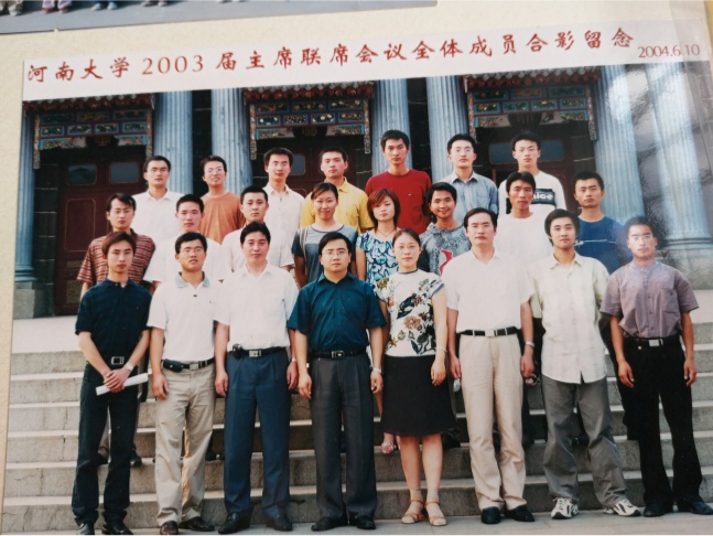 2001年9月10日,背起行囊,转了两次车,到了开封火车站河大新生接待站。再坐学校的大巴车,来到仁和公寓的新生报到处,和通知书颜色一样,数学系的旗子也是蓝色的。一切都是崭新的,一切都是晴朗的,和当时的心情一样。学长学姐的热情接待自不必说,只是在办手续时有一样在接待处无法办理,需要去系办公室单独处理,那是我的党组织关系介绍信。一位三年级的学长带我去系办找老师,顶着大太阳跑了老半天才进了依城墙而建的校东门,经过艺术学院,走过东十斋房来到东一斋,数学系在此办公。进入楼内,古朴典雅,第二个房间就是党总支办公室,在那里我见到了学院的首位老师,也是直到现在还亦师亦友的高志锋老师。高老师接过我的介绍信,翻了翻手边的小本子说:“你的档案我看过,中学时做过学生会主席,也是省级优秀学生干部,只是里面没有体现你的党员身份,介绍信交给我就行了,先去办其他手续吧”。寥寥数语,已经让我明白了这里老师的敬业,学生还没到,竟然提前深入了解学生的情况。