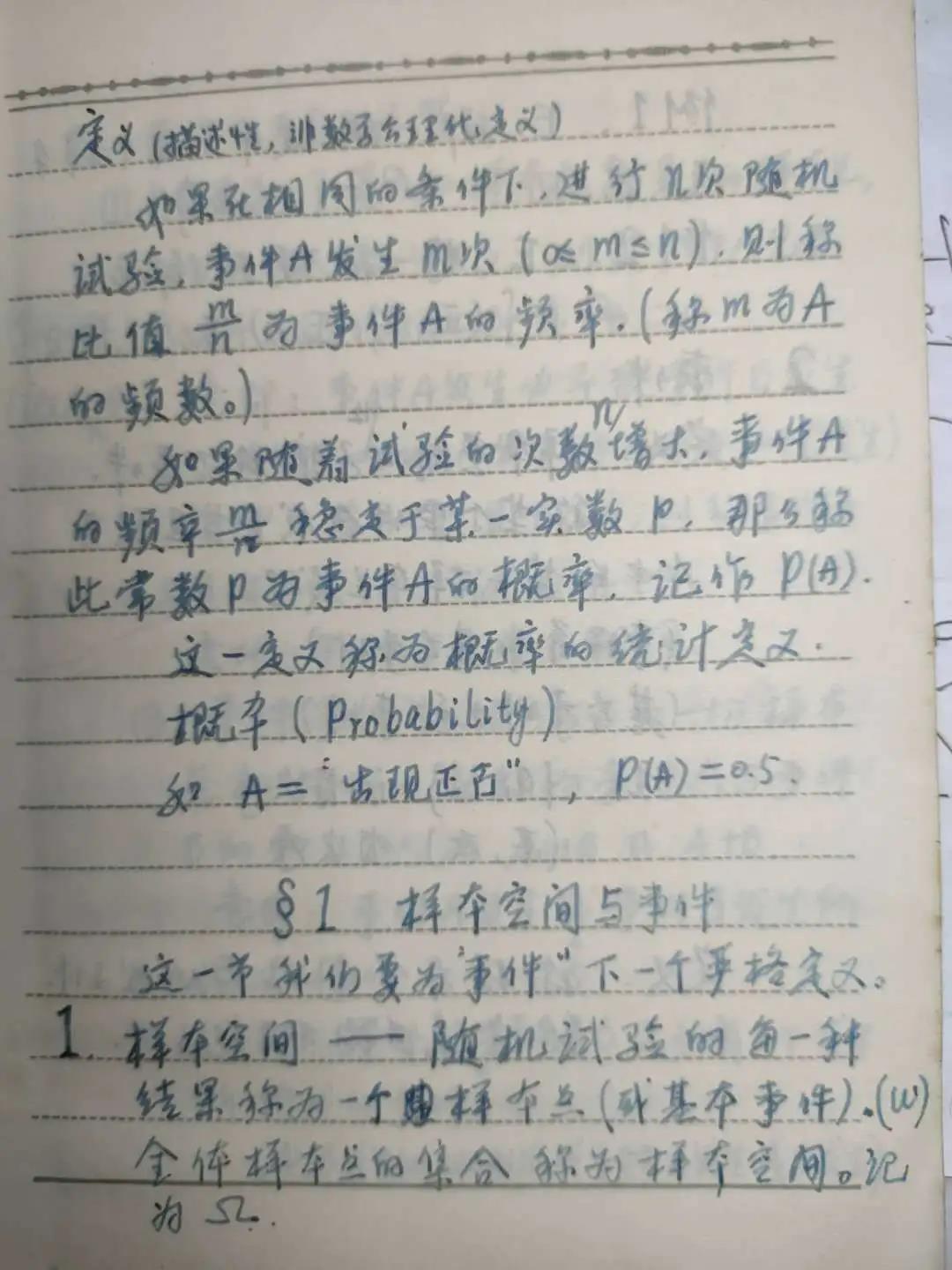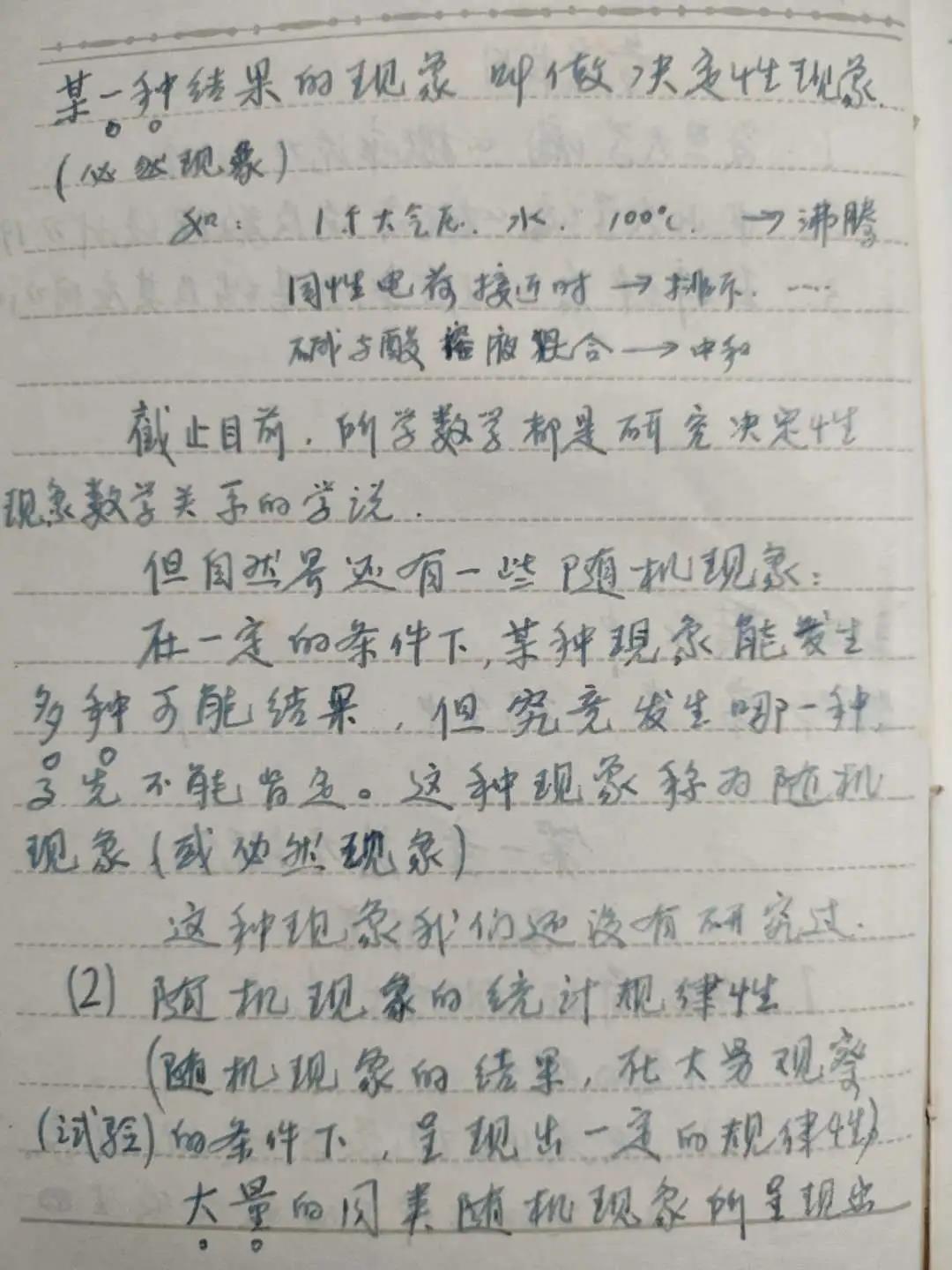 另一门建立在公理化体系之上的学科是概率论与数理统计。它包含三个公理,俗称概率三公理,因而它也是一门非常严谨的学科,有着广泛的应用。凡是学习过的人都知道这门课难度大,学好教好都不容易。这门课由樊家琨老师讲授,常忠、杨金钟老师辅导。樊老师治学严谨,讲课声音洪亮,不拿讲稿,不带教材,课讲得漂亮,板书写得整齐,且字写得又快又好,不知道他是如何练成的,同学们都喜欢上他的课。