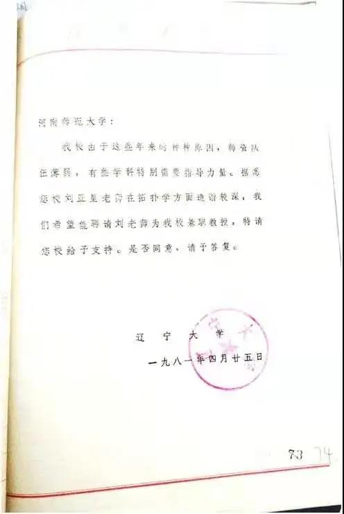 1981年6月,经两校层面友好协商,先生受聘为辽宁大学拓扑学方向兼职教授。期间曾受邀带着我和孙汴生去辽大讲学,那次沈阳之行,先生热情接待并悉心指导当地一位自学数学的青年工人,最终协助其写出同伦理论相关学术论文的事迹,在当地传为佳话,也让我对先生的为人处世有了更进一步的认识。