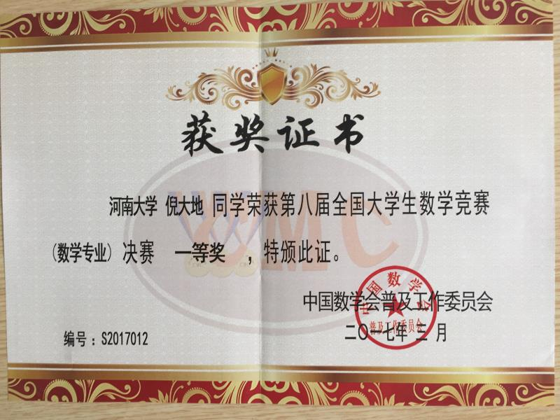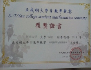 实验班培养成绩十分突出。2014级实验班倪大地同学和2015级实验班张敬贤同学分别荣获第八届和第十届全国大学生数学竞赛数学专业组一等奖,并被保送推免至清华大学和中国科学院继续攻读研究生;还有2014级和2016级两位同学获得专业组二等奖,分别被保送推免至山东大学和南开大学继续深造。此外在国际丘成桐大学生数学竞赛、全国大学生数学建模竞赛和美国大学生数学建模竞赛等专业学科竞赛中也屡获佳绩,年均获得省级以上奖励50余项,为学校和学院争得了荣誉!