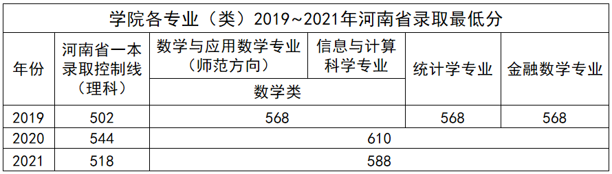 面向全国十几个省份招收理科生,生源质量较好。近三年学院在河南省录取分数情况如下表: